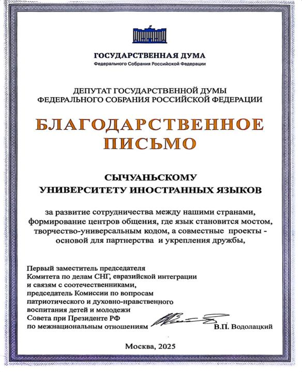 En tant que base importante de formation des talents en russe dans le sud-ouest de la Chine, ces dernières années, la faculté de russe de SISU a concentré ses efforts sur la construction de plateformes telles que le Centre de services linguistiques internationaux, en profondissant l'intégration de la recherche, de l'enseignement et de l'application. La qualité de la formation des talents et la capacité de service à la société continuent de s'améliorer. Dans les prochaines étapes, le Centre de services linguistiques internationaux de la faculté de russe continuera à se connecter avec diverses plateformes pratiques et projets d'échange, aidant plus d'étudiants à montrer leur valeur dans le service à la stratégie nationale et à l'ouverture internationale locale, et à grandir en tant qu'ambassadeurs juvéniles « spécialisés, culturellement compétents et responsables ». (Traduction : Yin Xiaoyu )